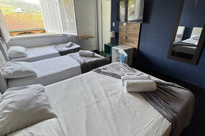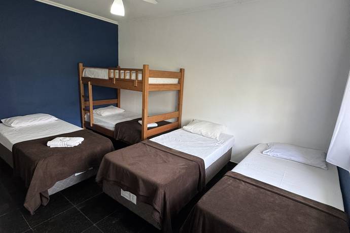 Quartos amplos e bem equipados, ideais para diferentes perfis de hóspedes: casais, famílias, grupos de amigos ou viajantes individuais.
