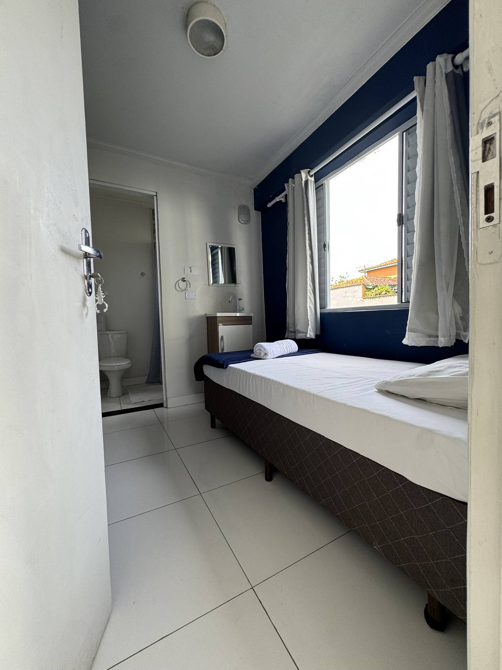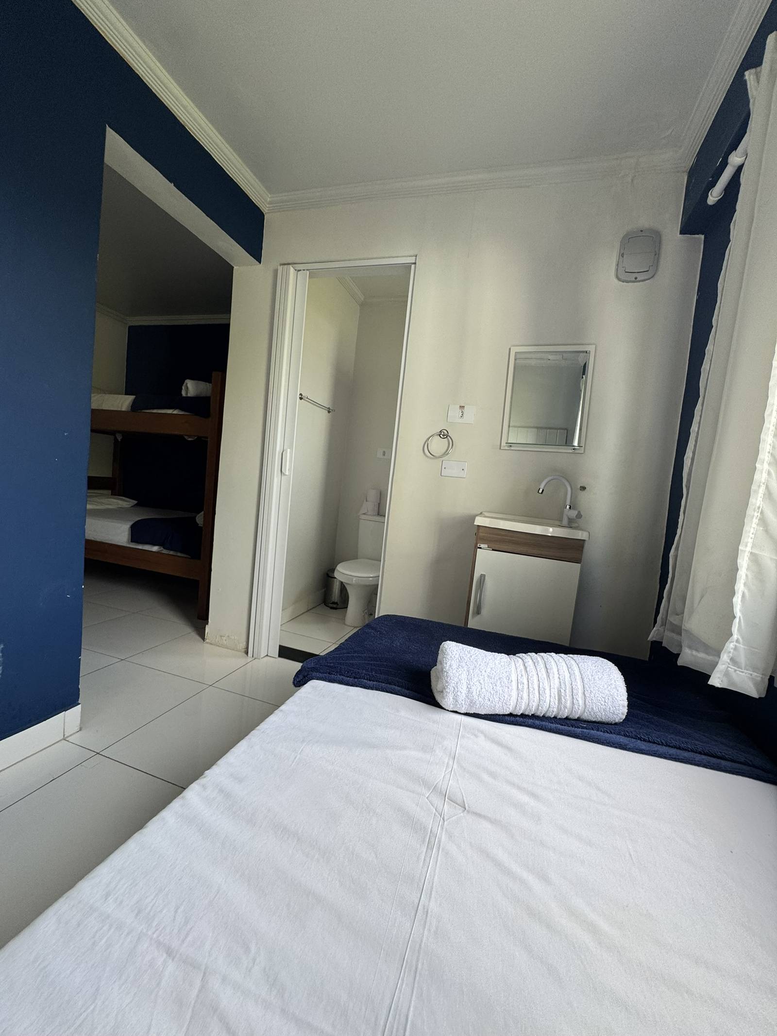 A acomodação Externa Térreo Família é perfeita para grandes grupos, hospedando até 05 pessoas em uma cama casal, um beliche e mais uma cama solteiro, e com as seguintes comodidades: