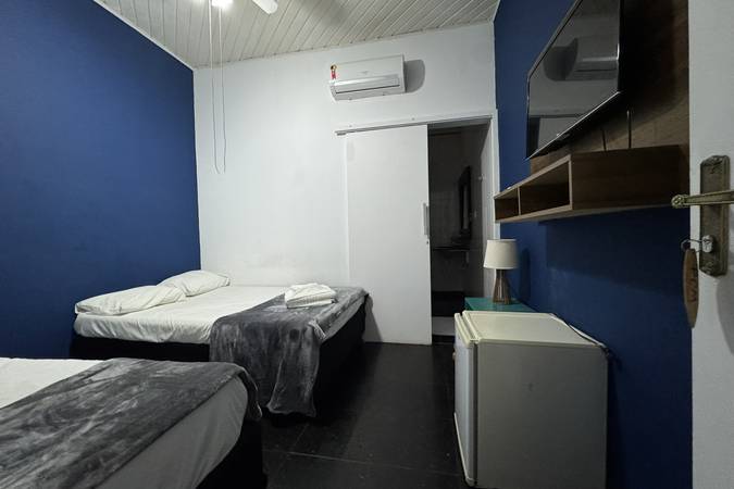 Wifi TV Frigobar Ar Condicionado Cama Box Amenities Enxoval Completo Ventilador de Teto