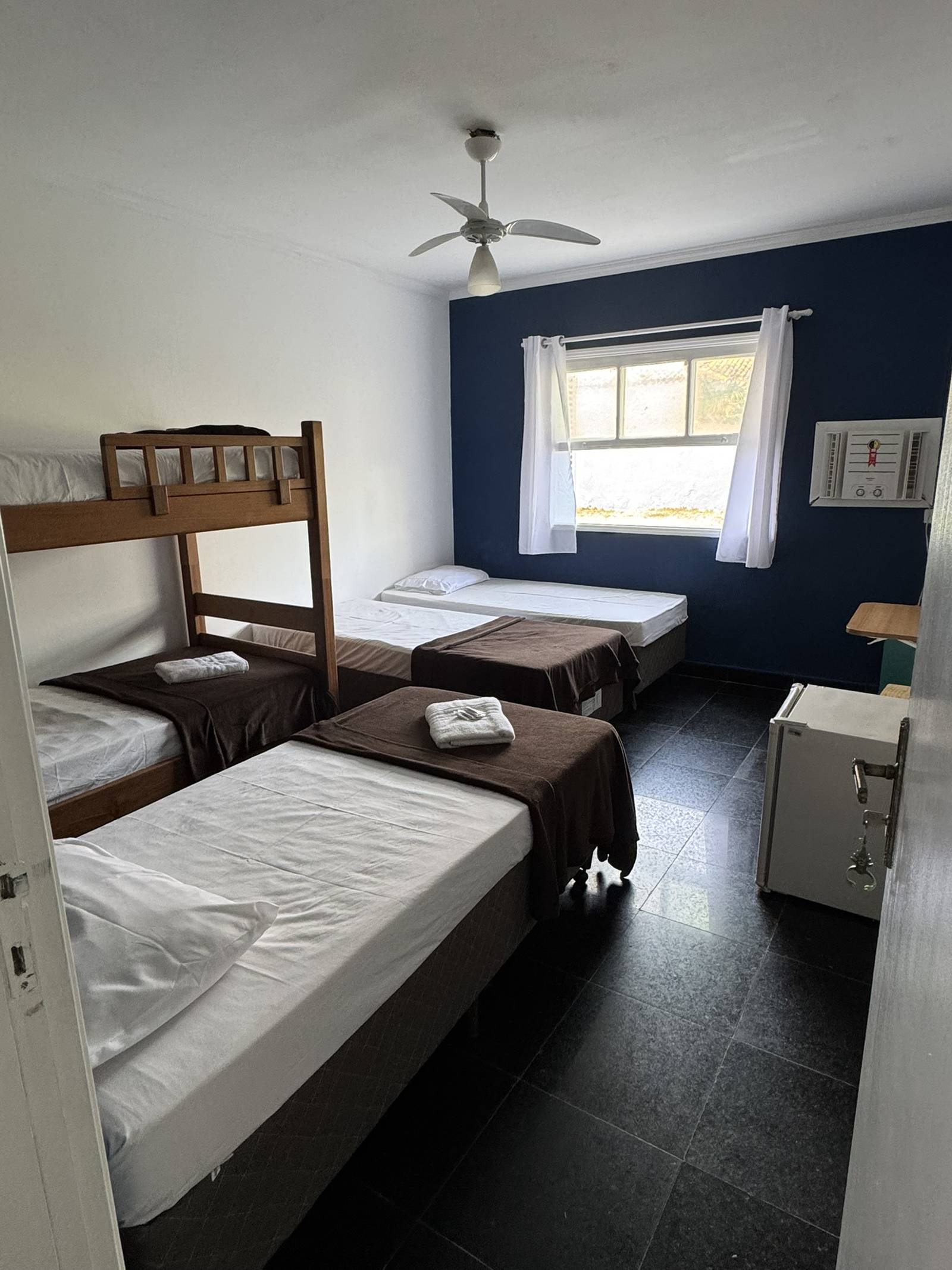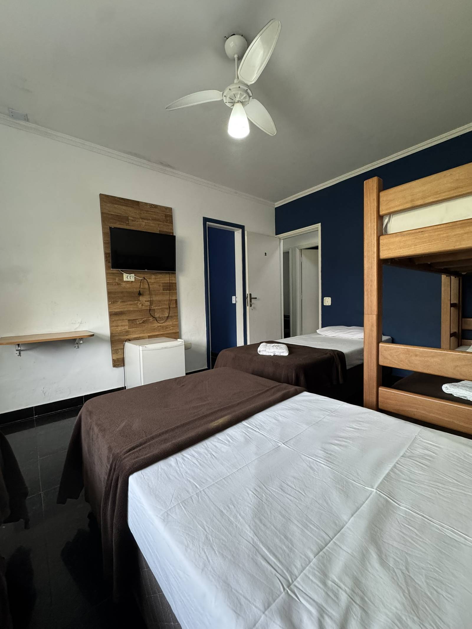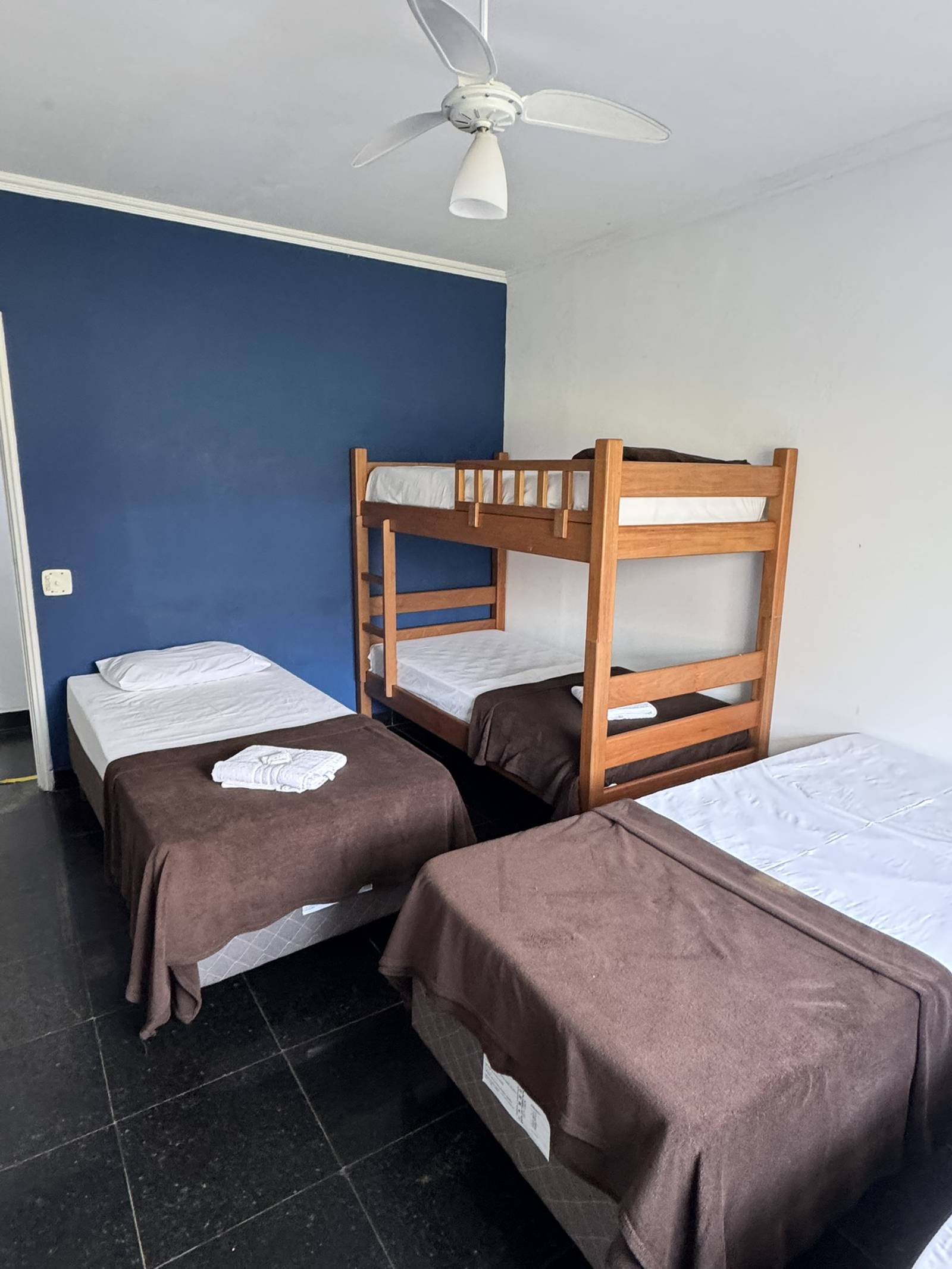 Nosso Quarto 2 é da categoria Home Térreo Família, que hospeda confortavelmente até 5 pessoas com uma cama casal + uma cama solteiro + um bicama ou um beliche, e as seguintes comodidades: