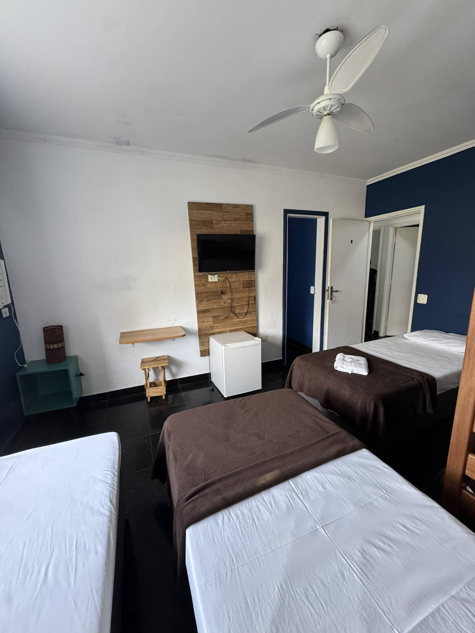 Wifi TV Ar Condicionado Cama Box Amenities Enxoval Completo Quarto Família Ventilador de Teto